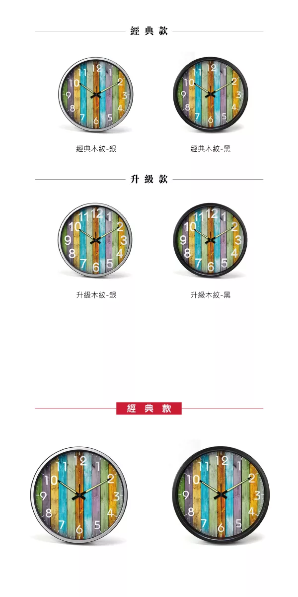 《預購》彩色木紋數字指針夜光顯示壁掛鐘- 經典木紋 黑![]()